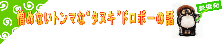 先日のミーティングは、わが町「豊橋」で起こった“タヌキ盗難事件”のドロボーが捕まったというニュースで盛り上がりました。NHKのニュースで全国に放映されるなんて、同じ「豊橋」の住人として「とても恥ずかしい。でもちょっとおもしろい」と言いながら、ついつい笑ってしまいました。