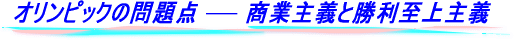それに加えて、勝利至上主義による選手のプレッシャーや金銭問題・世界記録への挑戦・国家の威信などが絡んで“ドーピング”という問題を生み出しています。競技というものは本来、「選手と選手」「チームとチーム」の闘いであるべきなのに、国威発揚が第一の目的となっているような国もあります。