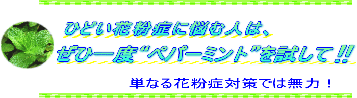それにしても、ペパーミントの絶大な効果には、スタッフ一同驚きの声をあげました。そしてこの事実を、早速皆さんにお知らせしたいと思いました。これまでの花粉症対策ではなかなか効果が得られなかった方、ぜひ一度“ペパーミント”を試してみてください!