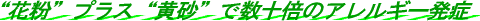 “黄砂”については少し前までは自然現象だと考えられてきましたが、現在では、中国での過放牧や耕地拡大等による人為的影響力が大きいと言われています。ここ数年間、黄砂の日本への飛来回数が増加し、人体に悪影響を及ぼす汚染物質や有害微生物をいっしょに運んでくることが大きな問題となっています。こうして“花粉”だけよりも、 “花粉”プラス“黄砂”で何十倍も鼻の粘膜の破壊が進むことがわかり、単なる花粉症対策では無力であることが判明しました。
