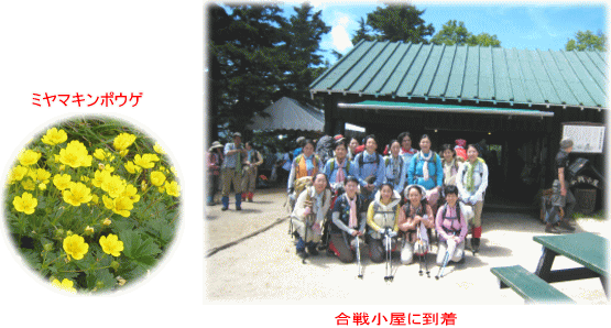 登り始めてから3時間15分、やっと“合戦小屋”に着きました。もっと楽に登ってこられるものと誰もが思っていましたが、予想以上の暑さにみんなヘトヘト。ここで少し長めの休憩をとり、「さぁ、最後のひと踏ん張り。もう少し頑張ろう!」とみんなで声をかけ合い出発しました。ここからは高山植物の宝庫です。黄色のミヤマキンポウゲや白色のチングルマなど、いろいろな花々を楽しみながら登っていきました。
