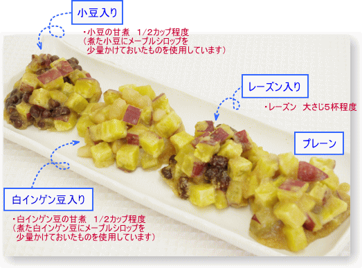 基本の鬼まんじゅうの材料(分量)に、下記の材料をそれぞれ加えて同様に蒸す。