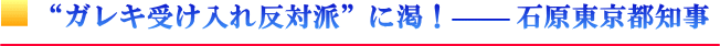 “ガレキ受け入れ”と言えば、私たちが真っ先に思い浮かべるのは“石原都知事”の発言です。東京都は全国の自治体に先駆けて昨年9月に受け入れを表明し、11月には実施に踏み切っています。石原都知事は記者から、住民から寄せられた3千件近い反対意見に対してコメントを求められると 「放射線量を測って、何でもないものを持ってくるのだから『黙れ!』と言えばいい。放射能が出ていれば別だが、皆で協力して力があるところが手伝わなければしょうがない。皆、自分のことばかり考えている。日本人がダメになった証拠だ」と語り、毅然とした態度で反対意見を退けました。