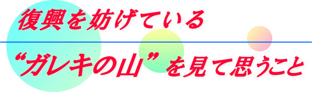 こうした心温まる話とは対照的に、国内ではいまだ行き先の見つからない“ガレキの山”が、“復興”を妨げているとして大きな問題になっています。そこで今回は、なかなか進まない「ガレキ処理の問題」について、私たちが感じていることを少し述べてみたいと思います。
