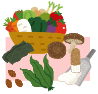食物繊維には大きく分けて、水に溶けない“不溶性食物繊維”と、水に溶ける“水溶性食物繊維”があります。“不溶性食物繊維”は、胃や腸の中でも水に溶けず、腸内細菌によってもほとんど分解されず、そのまま排泄されます。保水性が高いため、胃や腸で水分を吸収して大きく膨らみ、腸を刺激して排便を促します。また、硬くて食べづらいものはよく噛んで食べるために食べすぎを防ぎます。大腸内で発酵すると善玉菌が増殖し、腸内環境を整えます。不溶性食物繊維は、全粒雑穀をはじめ豆類・種子類・ナッツ類・野菜やイモ類・キノコ類に含まれています。