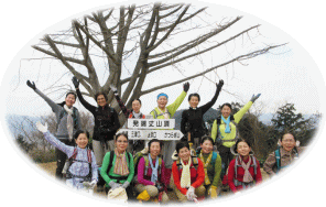 午後1時、やっと“発端丈山”山頂に到着、口々に「ヤッター!」と歓声を上げます。明るく開けた山頂には、シンボルツリーのイチョウが1本立っています。ここからの眺めも素晴らしく、駿河湾に浮かぶ“淡島”に「可愛い!」と、みんな目を輝かせていました。富士山は見えませんでしたが、伊豆ならではの海と山の景色を満喫することができました。