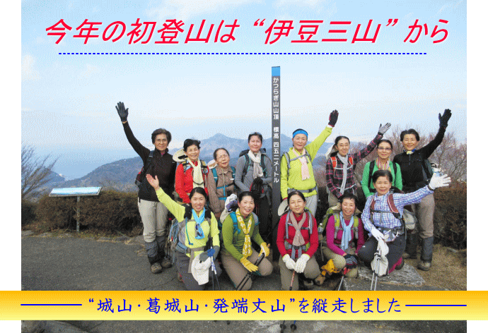 今年の初登山は、緩やかな伊豆三山を縦走するハイキングコースでしたが、ハイキングにしてはちょっときついコースでした。残念ながら富士山の絶景はお預けになってしまいましたが、自然のエネルギーをたっぷりと浴びて、心は満足感でいっぱい、大いにリフレッシュすることができました。