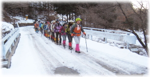 あっという間に時が過ぎ、下山開始。同じ道を滑らないように慎重に下っていきます。12時、難所ポイントを無事通過し、ホッと一安心。
