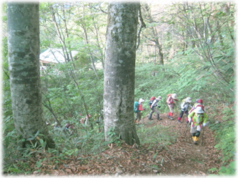 しばらくの間、ブナの原生林が続いたかと思うと、次はダケカンバの木も混じってきました。人間の手が入らない自然のままの原生林は、そこを通るだけで木のエネルギーが伝わります。「緑がすごくきれい! 心が洗われるわね」 と、みんな感動の声をあげていました。