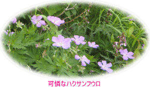 8時50分、ログハウス風の “大倉山避難小屋” を通過。平らな尾根を進むと道の両側には黄色いミヤマキンバイやニッコウキスゲ、ピンク色のハクサンフウロなど可愛らしい花々が咲き乱れ、暑さでバテ気味の体と心を癒してくれます。