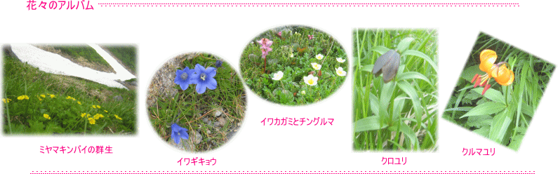 剣ヶ峰や大汝峰を眺めながら一休みし、次は “お池めぐり(火口湖めぐり)” です。岩がゴロゴロとした急な斜面を慎重に下っていきます。頂上を少し下がった辺りには、大小7つの池があり、中でも “千蛇ヶ池” は夏でも雪と氷で閉ざされている日本で唯一の池だとか。シーンと静まり返った “紺屋ヶ池” や “油ヶ池” ・“翠ヶ池” などをめぐり、大自然が織りなす絶景を堪能しながら歩いていきます。最後に、雪に覆われた “千蛇ヶ池” を渡ると、そこは一面、見事な高山植物の群生地でした。可憐な白い花が満開のナナカマドや珍しいクロユリなど、さすが白山は “高山植物の宝庫” と言われるだけあって、本当にたくさんの花々を眺めることができました。
