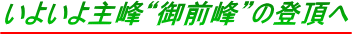 午後1時30分、山小屋のチェックインを済ませ、リュックをアタックザックに換え、いよいよ目の前にそびえる “御前峰” の山頂を目指します。平らな石を敷き詰めた急な坂道を一歩一歩踏みしめながらゆっくりと登っていきます。何度か振り返っては、山小屋がだんだん小さくなっていくのを確認します。