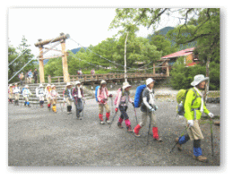 14時、やっと見慣れた“上高地バスターミナル”に戻ってきました。この頃には雨もあがり、青空も覗いていました。3日間にわたる登山を無事終え、みんな、安堵感と達成感に満ちた最高の笑顔でした。休憩を含めた総歩行時間は19時間30分“槍ヶ岳”登山は、私たちの心にまた一つ大きな宝を残してくれました。