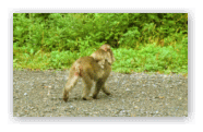 9時35分、“槍沢ロッヂ”に到着。ここから雨が激しくなってきました。“横尾山荘”を過ぎ、飛ぶようなハイスピードで歩きました。上高地に着くと、登山者や観光客の中にふさふさとした毛並みのニホンザルを発見。小さな子ザルをおんぶしている母ザルの姿がなんとも可愛らしく、それまでの疲れが一気に吹き飛びました。