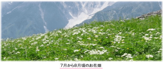 登り始めてから3時間15分、やっと“合戦小屋”に着きました。もっと楽に登ってこられるものと誰もが思っていましたが、予想以上の暑さにみんなヘトヘト。ここで少し長めの休憩をとり、「さぁ、最後のひと踏ん張り。もう少し頑張ろう!」とみんなで声をかけ合い出発しました。ここからは高山植物の宝庫です。黄色のミヤマキンポウゲや白色のチングルマなど、いろいろな花々を楽しみながら登っていきました。